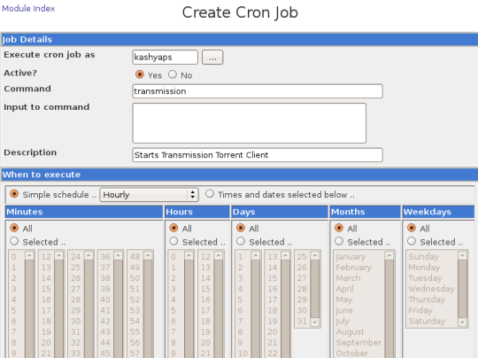 要?jiǎng)?chuàng)建任務(wù),店家“創(chuàng)建新預(yù)定時(shí)鐘守護(hù)任務(wù)(Create a new scheduled cron job)”,你就會被帶到創(chuàng)建預(yù)定任務(wù)的界面,你可以在這里指定命令和參數(shù),指定任務(wù)執(zhí)行的時(shí)間,而不用手動更改crontab文件。